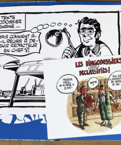 Les Dingodossiers, fruit de la collaboration entre René Goscinny et Marcel Gotlib, est un recueil de gags et de saynètes qui revisitent avec humour les petits travers de la vie quotidienne. Chaque page offre un regard pétillant, teinté d’absurde, sur des sujets aussi variés que la scolarité, l’administration ou la vie de famille, révélant un duo d’auteurs à la verve aussi incisive qu’hilarante.